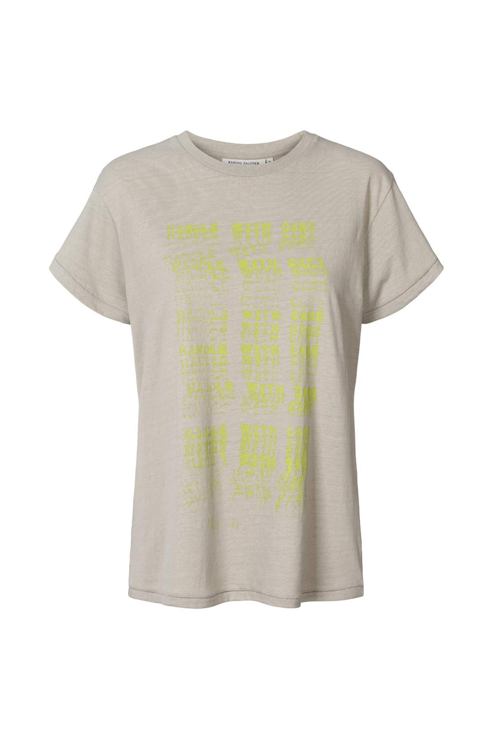 Das T-Shirt wird in Indien hergestellt, während das charakteristische Handle with care-Motiv in unserem Designstudio in Kopenhagen von Hand gezeichnet wurde.